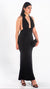 Turn heads with the Deep Plunge Maxi Gown, a statement piece that exudes timeless sophistication. Featuring an alluring halter neckline, dramatic open back, and flowing silhouette, this gown is perfect for glamorous evenings. Its minimalist design is elevated by chic floral accents and bold detailing, making it a must-have for the confident modern woman.