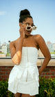 Own the edge in the Diosa 2 Piece Skort Set — a sultry, sculpting showpiece made to command attention. Featuring a strapless corset bodice with supportive boning, an exposed dual-ended front zipper, and layered cargo pocket accents for a bold, utility-inspired twist.