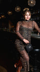 Sheer Midnight Mini shimmers with delicate transparency, studded with micro-crystals, hugging every curve in a sultry silhouette. The slim spaghetti straps and scoop neckline lend an effortlessly sexy vibe. Ideal for late-night dancing or after-party glamour, its subtle sparkle catches every beam of light, ensuring a magnetic, unforgettable entrance.