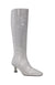 Introducing the Zaharra Boot with Clear Heel. These silver, sparkly boots are designed for the modern woman who loves to stand out. With a chic clear heel and dazzling crystals, they add a touch of glamour to any outfit. Perfect for making a stylish statement, they combine elegance and contemporary fashion seamlessly.