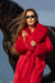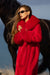 Command attention in a bold crimson faux fur coat that radiates power, confidence, and warmth, a timeless statement for cold-weather luxury.