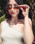 Thin acrylic coffee colored frames with gold accents on sunglasses with case.