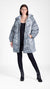 Silver one size fits all sparkly sequin knee length puffer coat perfect for staying fashionably warm with silver-tone hardware at zippers at front, dual pockets, snap closures and hood at back.