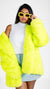 Highlighter Green fluffy coat with dual pockets and floral design lining at interior, spicing up any outfit with a pop of color!