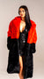 Wrap yourself in opulence with this Dual-Toned Faux Fur Coat, a bold statement piece in striking red and sleek black. Luxuriously soft with a modern oversized fit, this versatile layer elevates any outfit from day to night. A must-have for the chic woman seeking effortless glamour and warmth this season.