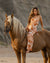 The Golden Hour Two Piece radiates sunlit sophistication with bold florals, silky flow, and a strapless design made for golden light and seaside allure.